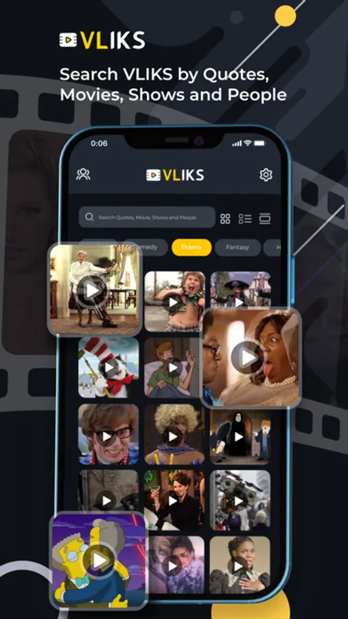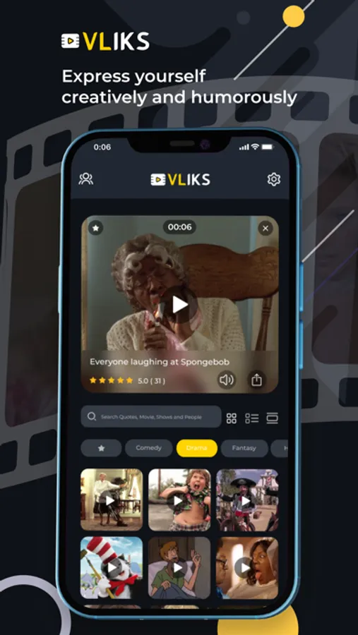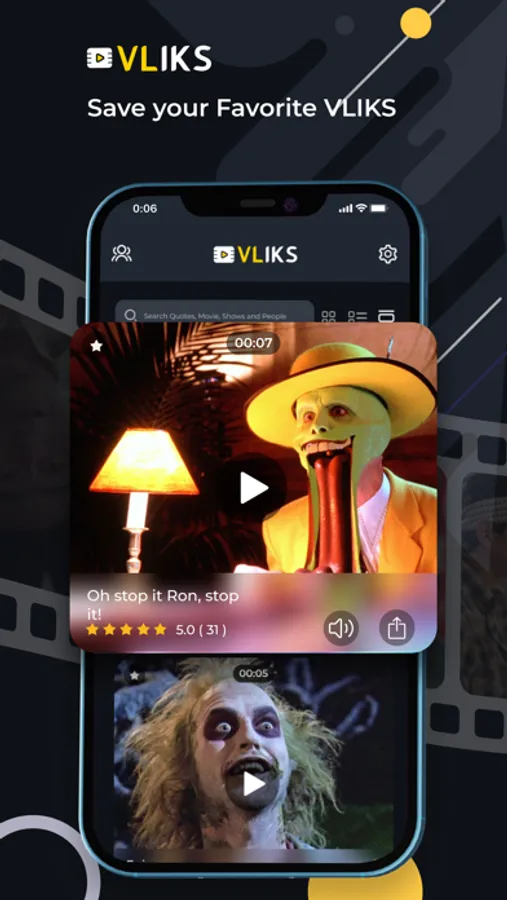 Simply download the VLIKS app, register, and easily search and share short audio-based video clips from your favorite movies, TV shows, video games, people, etc.
