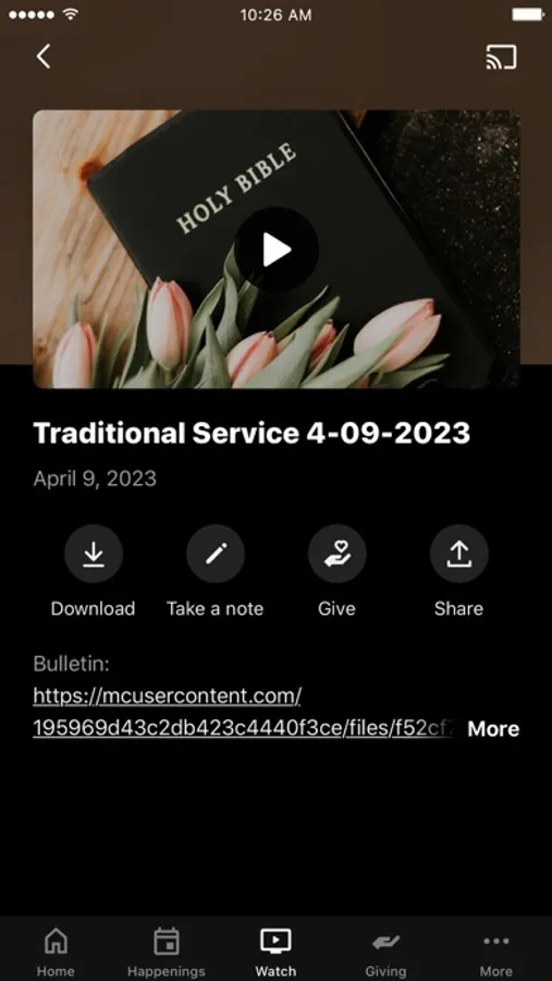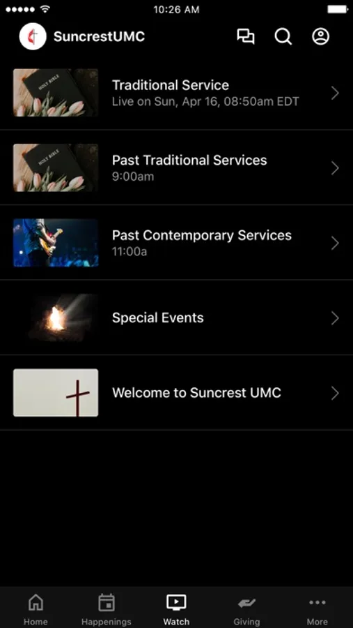 This app will help you stay connected with the day-to-day life of Suncrest United Methodist Church in Morgantown, WV. With this app you can: watch or listen to live streamed services and past messages; stay up to date with push notifications; manage online giving; connect to our Twitter, Facebook, or email links; and view current events for the church.