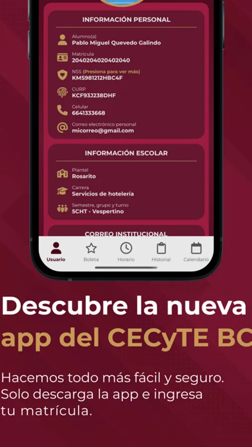 - Consulta de información personal y escolar, ¡con la posibilidad de crear tu correo institucional presionando un solo botón!