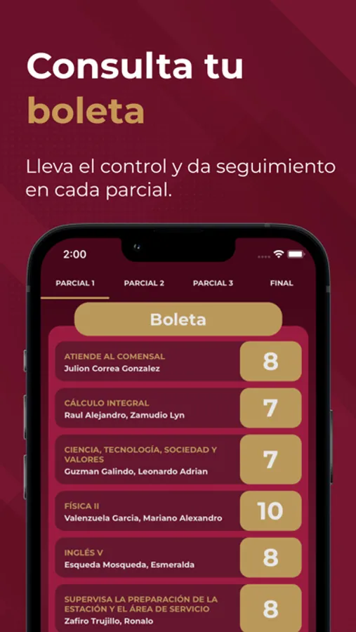 - Ver tu boleta de calificaciones parciales