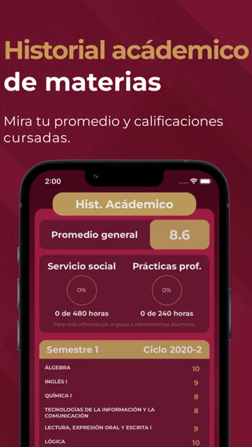 - Consultar tu promedio general, las horas de servicio social y profesional registradas, así como tu historial de calificaciones semestrales.