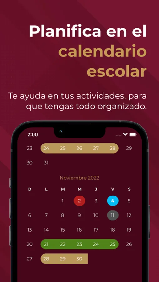- Tendrás disponible el calendario escolar para visualizar los próximos eventos a ocurrir.