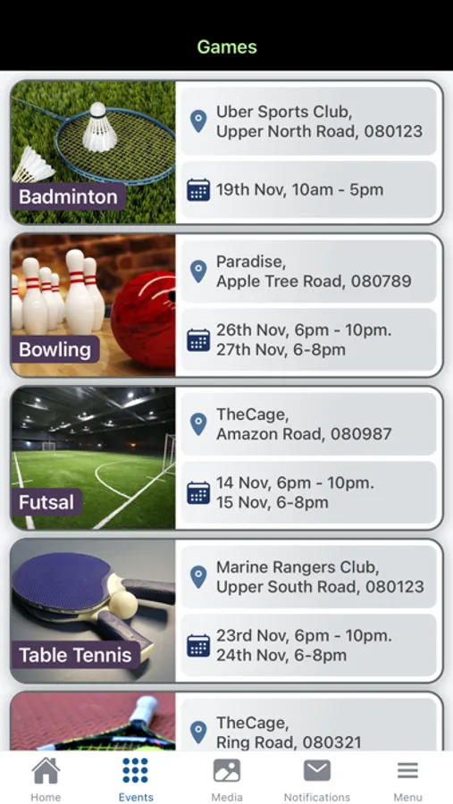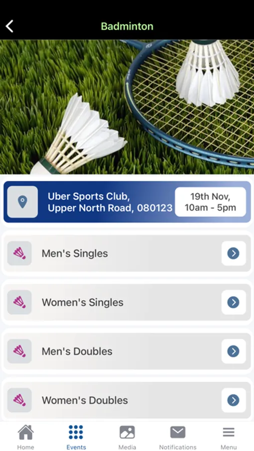 App to track the schedule, scores, rules, standings of multiple sports games in an event.