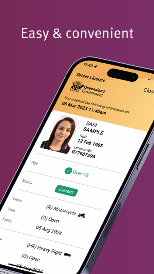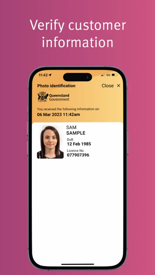 With the app, you can scan the QR codes presented by the Queensland Digital Licence app. The information which the customer has chosen to share with you will then appear in the Verifier app.