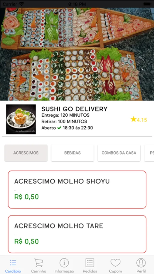 Tenha acesso ao cardápio completo do Sushi Go. Realize seus pedidos e aproveite as promoções exclusivas.