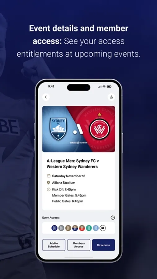 - Event details and access: See your access entitlements at upcoming Allianz Stadium and Sydney Cricket Ground events.