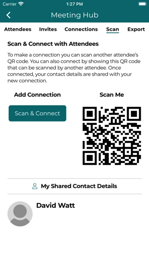 Provides option for Attendees to scan other attendee’s QR code & and automatically capture the contact details.