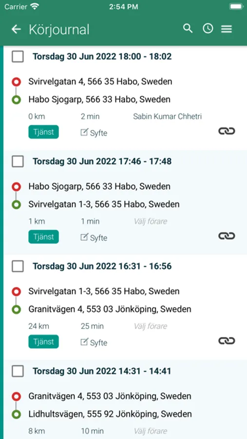 • Triplog: Automatic triplog approved by the Swedish Tax Agency