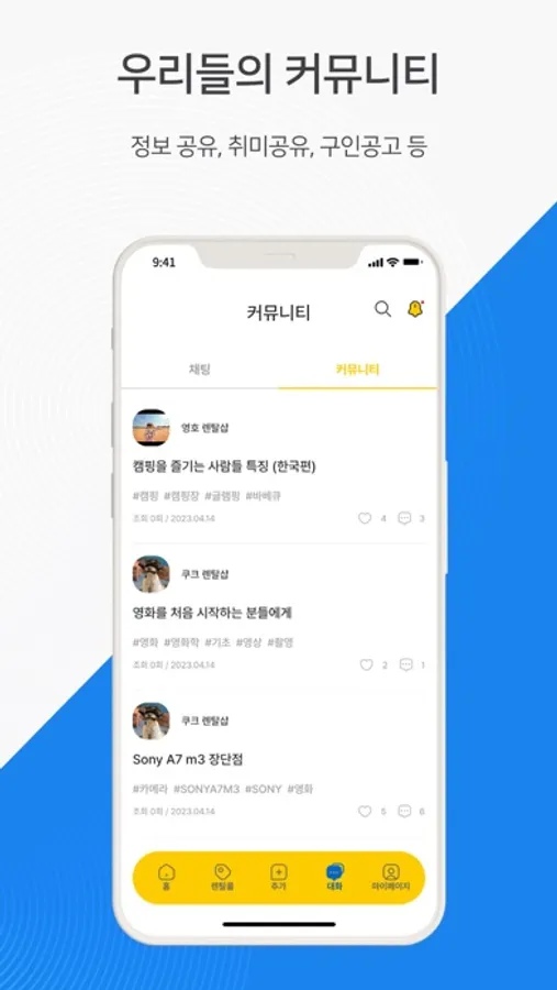 사기전에 빌려보자! 카메라, 음향기기, 캠핑용품, 골프채 등 고가의 물품들과 소유할 필요는 없지만 잠깐! 필요한 물건들 까지! 빌려드림에서 빌려보세요! 합리적소비를 위한 오픈렌탈마켓! 내가 렌탈샵 사장님이 되기도하고 렌터가 되기도 하는 재밌는 경험을 해보실 수 있습니다!