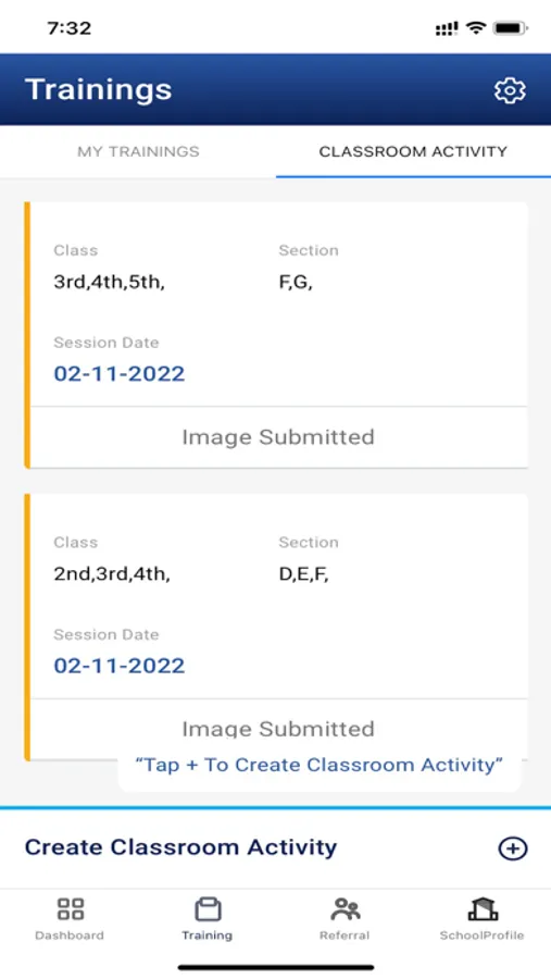 Allows uploading of pictures of classroom sessions