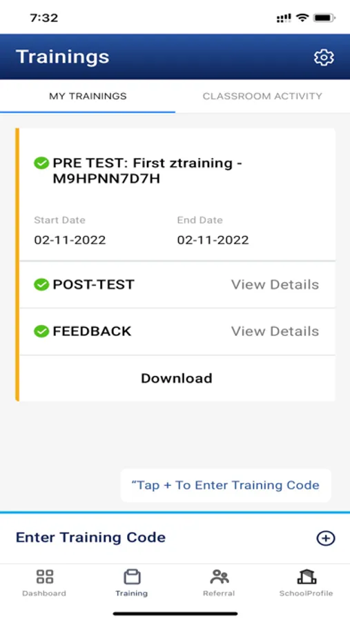 Allows downloading of training completion certificate