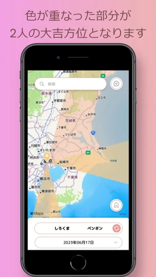 自分だけでなく、気になるお相手の方位と比較できるので、二人の吉方位が重なった場所が、大吉方位です。運気が良い場所を選んで、旅行や引越し先選びに活用できます!