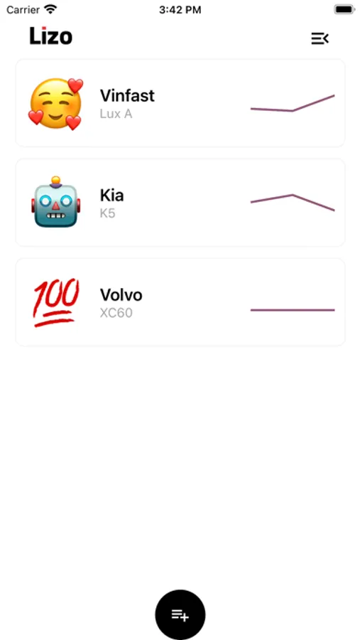 Giao diện đơn giản nhưng tiện lợi và dễ sử dụng, Lizo là một nhật kí cho chiếc xe của bạn.