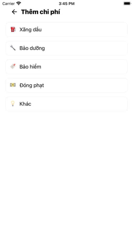 Bằng những Emoji trực quan giúp bạn dễ dàng ghi nhớ từng loại phương tiện cũng như từng loại chi phí, dễ dàng kiểm soát một cách nhanh chóng.