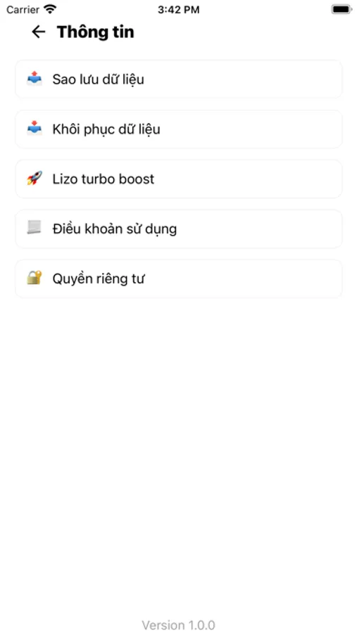 Lizo không lưu và không thu thập bất kì thông tin gì của bạn cũng như của phương tiện, mọi dữ liệu đều được giữ trong thiết bị của bạn mà không tải lên máy chủ nào.