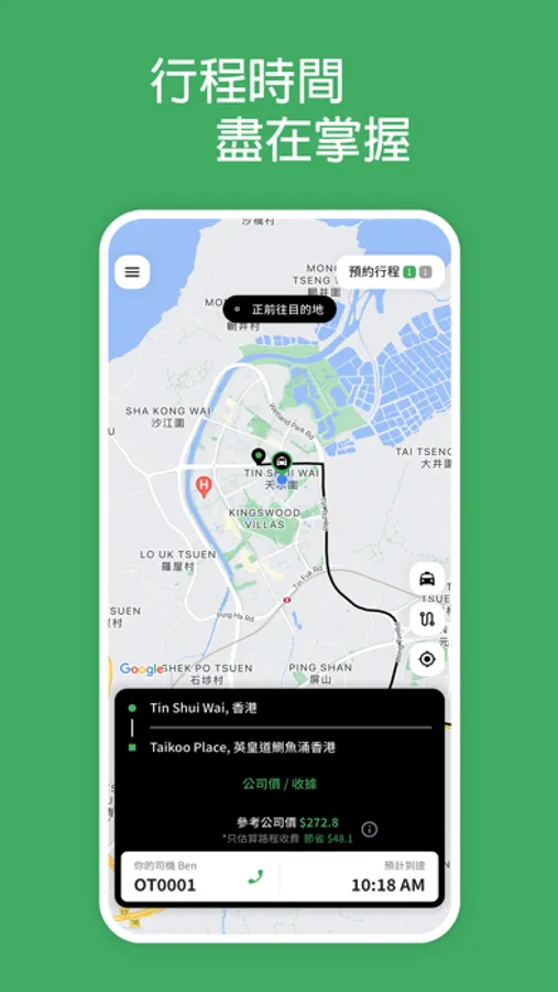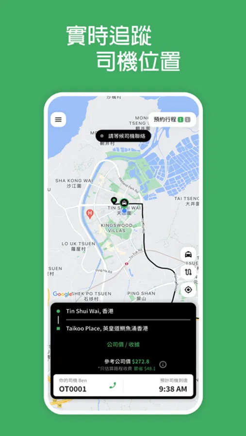 仲可以預約行程、追踪到司機即時位置、翻查行程紀錄、幫你估算車費。