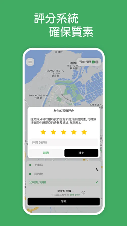特設評分系統獎勵司機,確保服務質素。