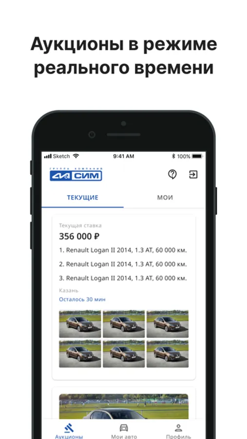 Приложение по продаже на аукционе автомобилей от ГК "СИМ"