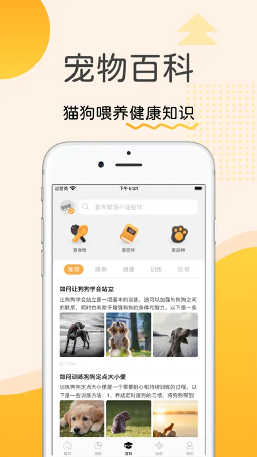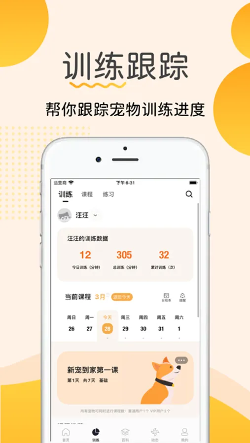 宠物记是一款专注宠物训练的app,提供丰富的在线训练课程帮助您的宠物狗或宠物猫养成良好的生活和行为习惯,增进您和宠物的感情,告别高昂的宠物训练课程,人人都能成为训练师,在家也可以轻松训练。