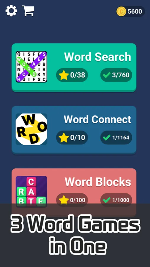 You can play "Word Connect", "Word Blocks" and "Word Search" Game and 2924 puzzles in a app.