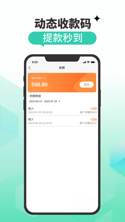 3、创业支持:订单系统,收款工具,动态码快捷收款,提款秒到账,快速回笼资金。