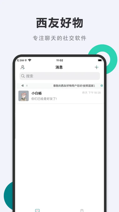 "西友好物" 一款稀有的难得聊天社交软件。干净 便捷 简单。