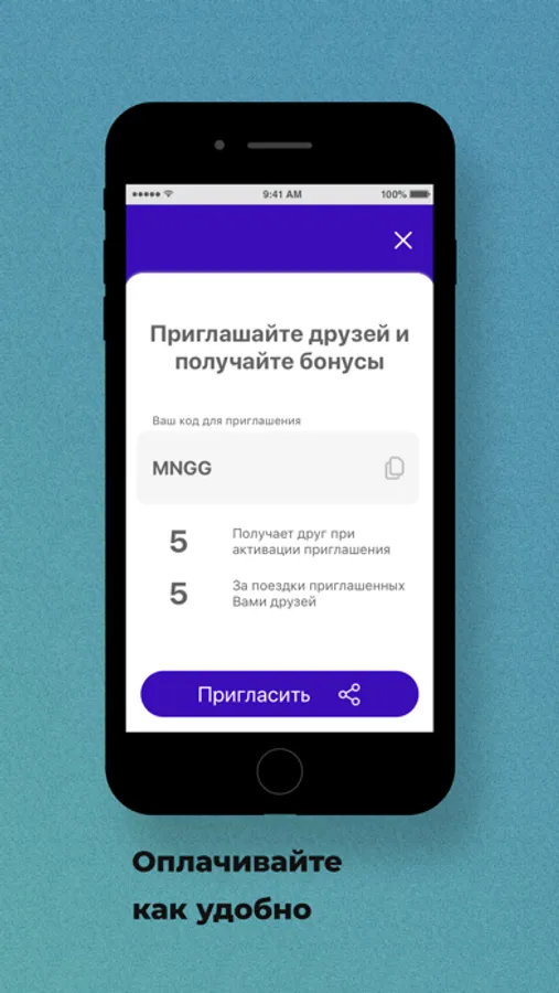 Приглашайте друзей в приложение и зарабатывайте бонусы с помощью реферальной системы. Оплачивайте ими и экономьте на поездках.