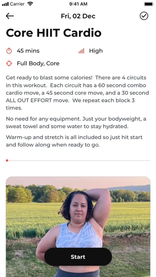 App also uses Apple Health to track energy burned and heart rate during a workout session, if an Apple Watch is used.