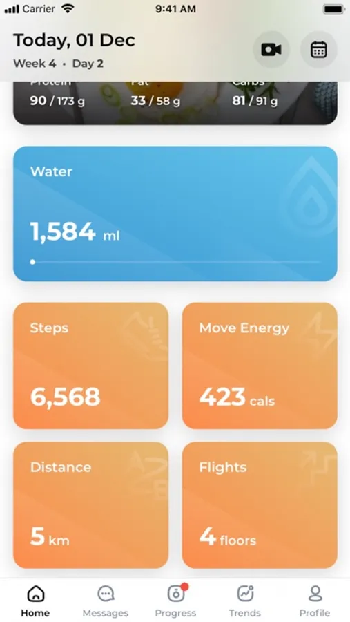 The app integrates with Apple Health to show your daily activity - distance, steps, active energy, and flights to help you better achieve your goals.