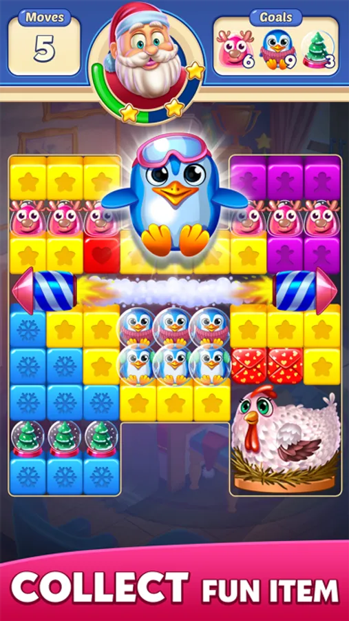 Welcome to Christmas Blast Match Puzzle Game, Match the Cube of the same colors & blast, solve match puzzle game and help Santa to decorate his Mansion. An exciting boosters for huge explosions to blast your way through thousands of levels!