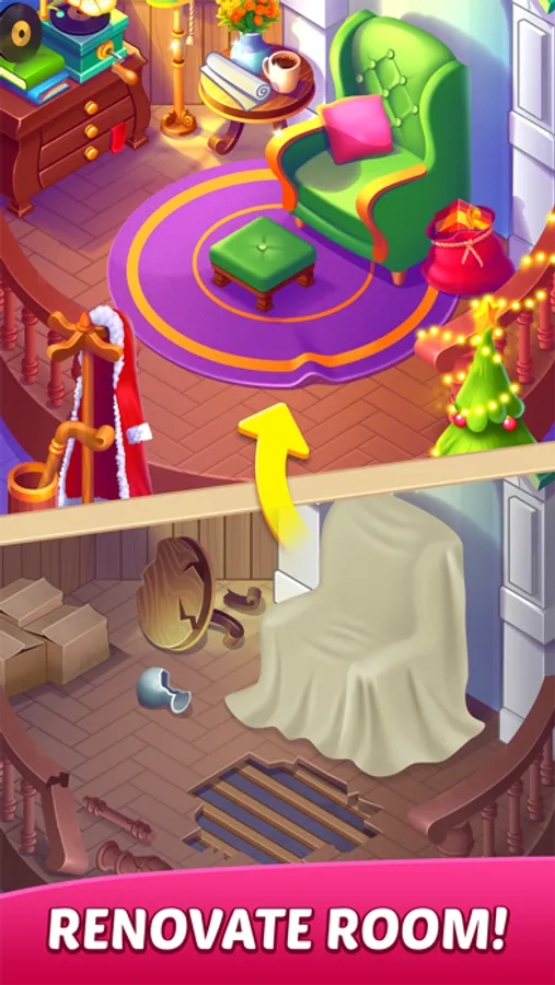 In short, the Christmas Match puzzle is one of the pair matching puzzle games with gameplay for design, decor and renovation of santa’s manor or castle. Design home games, renovate restaurant games and decorate games.