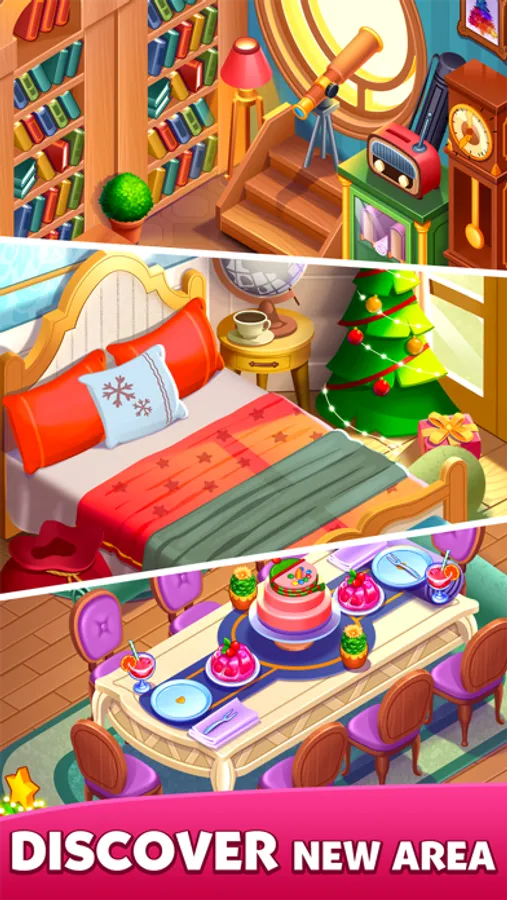 - Decorate the areas, including the Santa’s room, kitchen, garden, garage, and many other amazing rooms with challenging levels!