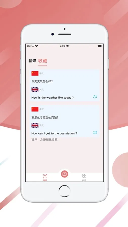 不同于普通英汉互译工具,本应用支持文本输入翻译、语音同传翻译,更支持相机拍照翻译。较大程度上改善了用户使用的便捷性,能进一步有效提高您的翻译效率,是您工作、生活、学习、旅游等的必备翻译神器。