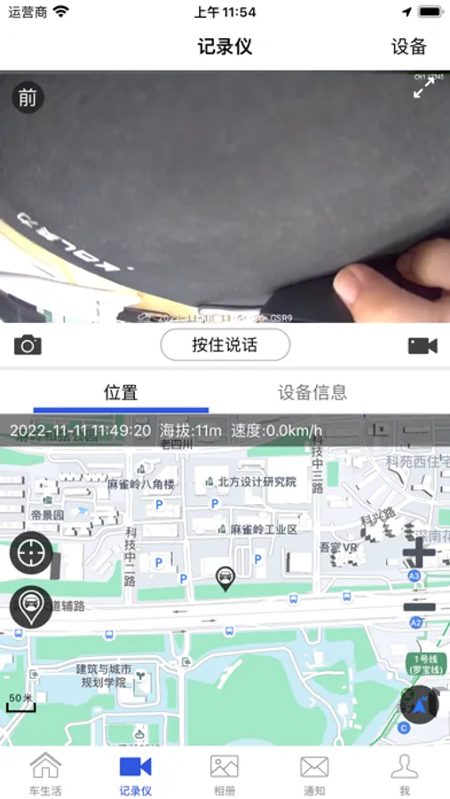【记录仪】:联网后可进行设备的控制,远程抓拍和查看车辆实时位置,调节背光和音量、预览摄像头画面等。在预览界面也可以快进、快退、左右滑动回看录制的视频,同时也可将设备上的照片和视频下载到手机中。