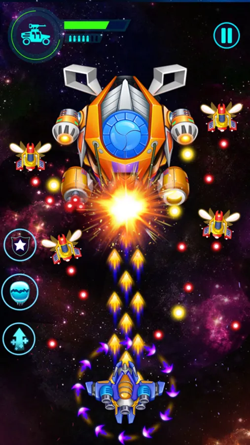 - Epic and huge bosses: Show off your skills. Enjoy arcade galaxy shooter game space combat - powered up
