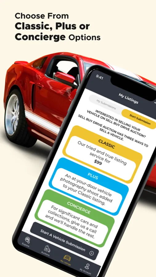 - All submissions are done from the vehicle submissions page. We offer three levels of service based on the needs of a seller—Classic, Plus, and Concierge.