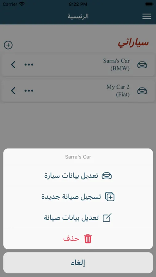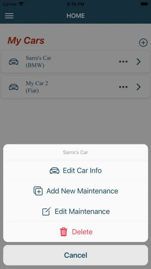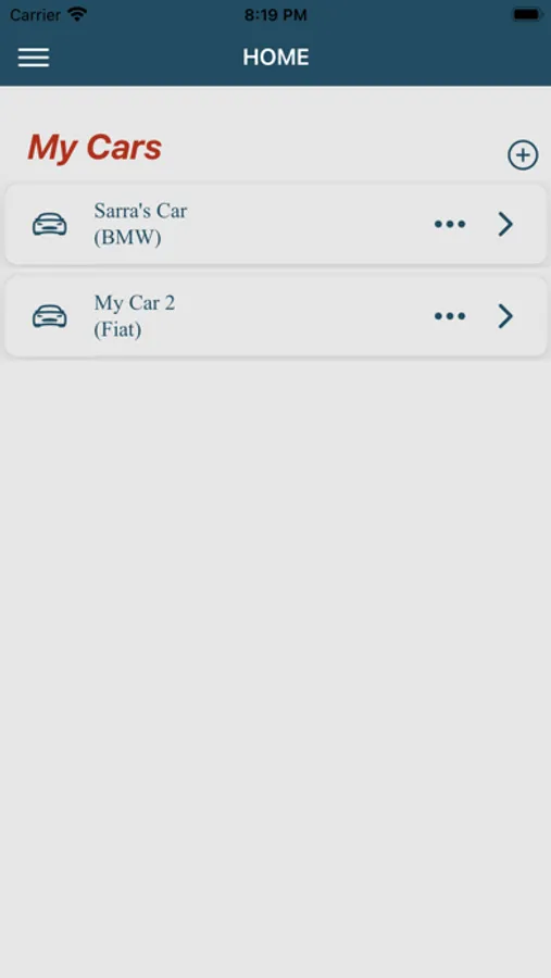 “Add Car” – Save each of your vehicles' info to your app, edit, or delete them.