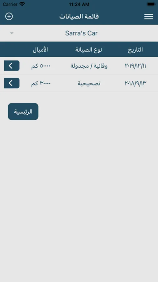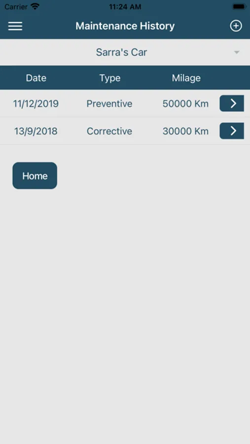 “Home” – Displays a list of all vehicles you saved in your app, to choose any of them for editing its data, adding a new maintenance log, or even deleting the whole vehicle from your application if you no longer need it.