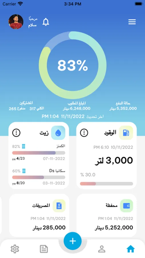 يمكنك ايضا من ادارة المصروفات الثابتة (الايجار ، الرواتب ، الضريبة )والمصروفات المتغيرة ( الكاز ، تبديل الدهن والفلاتر ، الاعطال ،المصروفات )