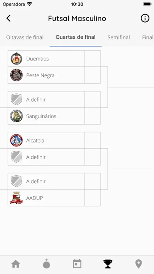 - Ver o calendário de jogos da competição, chaveamento das modalidades e classificações