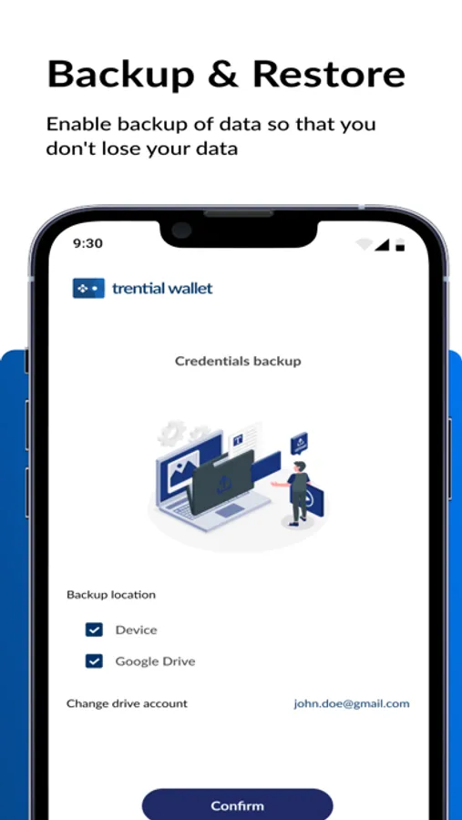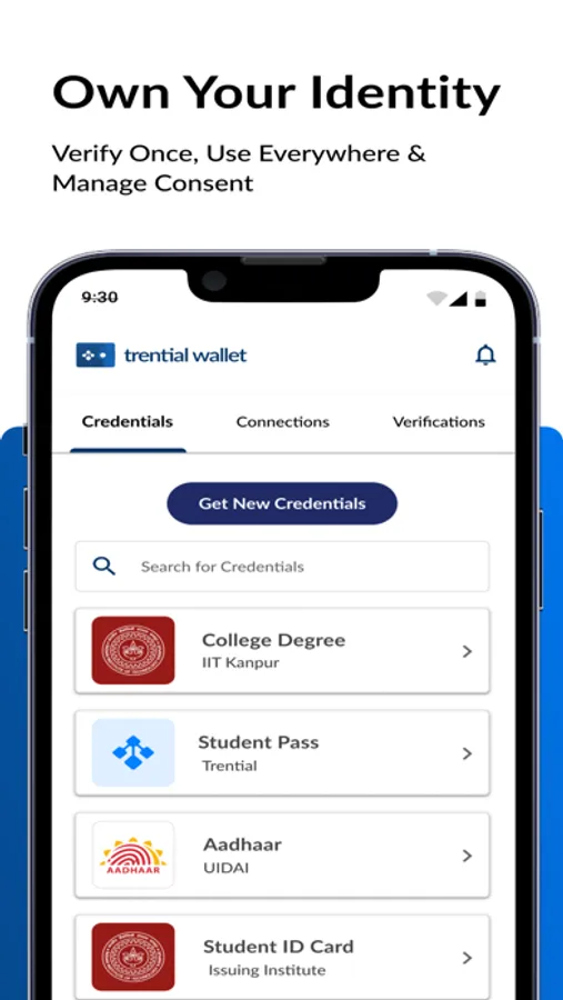 Trential Wallet helps you to manage all your digital identities & credentials from a single app. You can have digital versions of the credential & IDs (that you carry regularly in your physical wallet) and use them for online transactions in a private & secure manner. Moreover, no one other than you can access any of your information. Your data is stored only in your wallet and not in the cloud.
