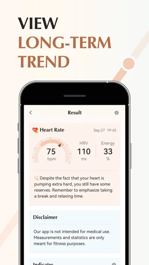 - Heart Rate Measurement: Instantly read your heartbeat by placing your finger on your smartphone's camera within different states.