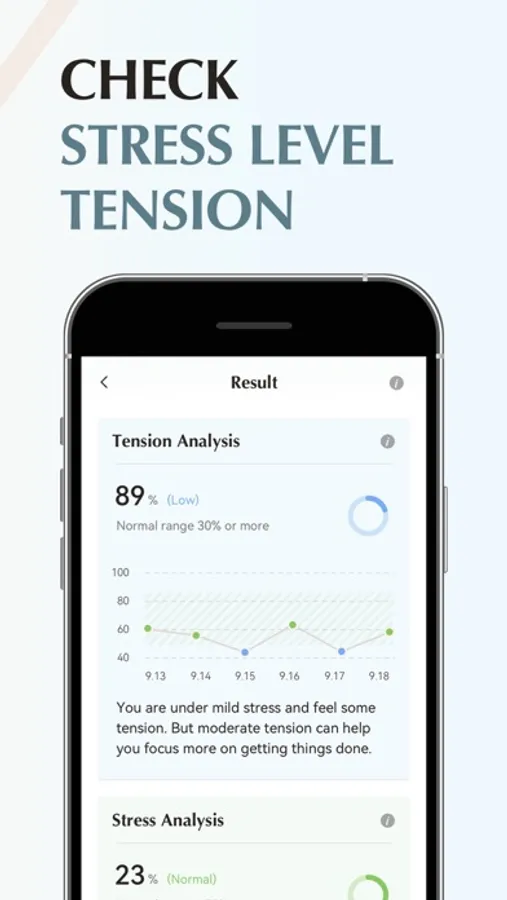 - HRV: Track your body's health status including Stress, Energy, Tension, and more.