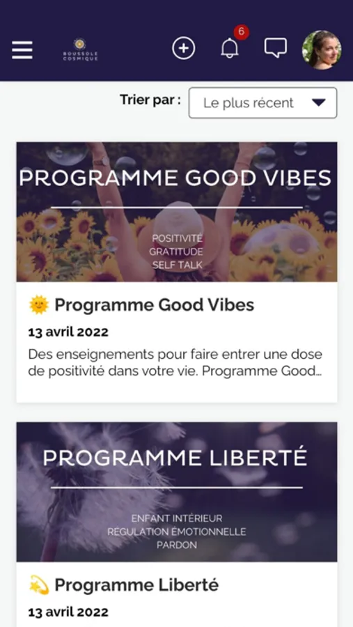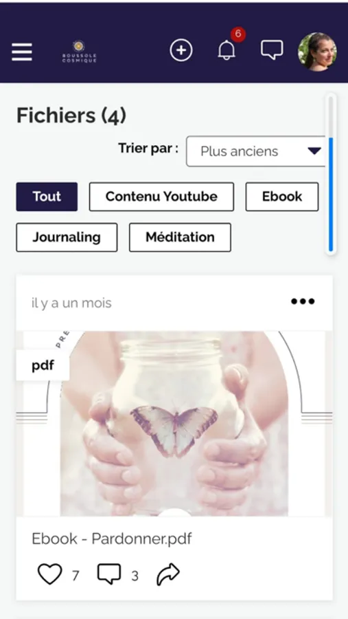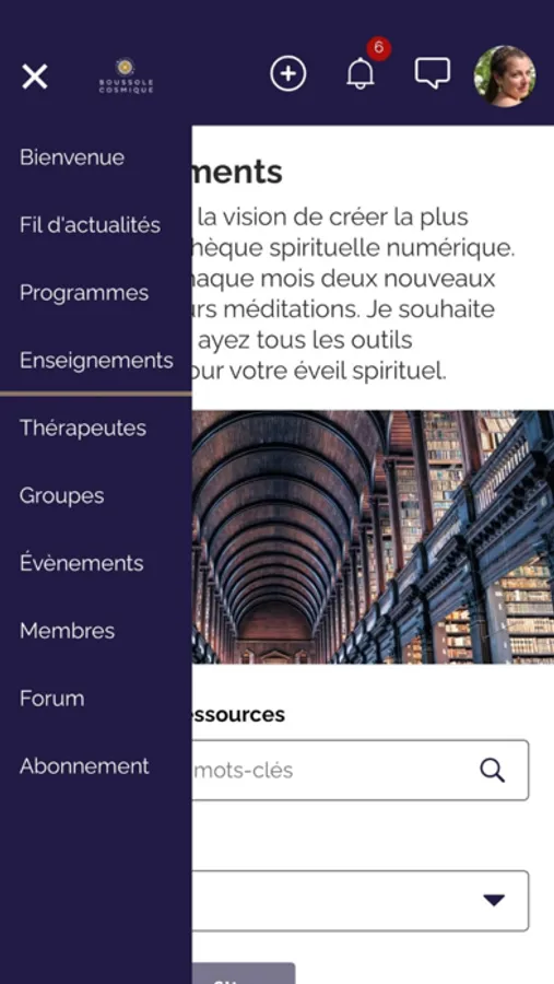Plateforme de contenu spirituel de qualité : ebooks, méditations, rituels et webinaires mensuels.