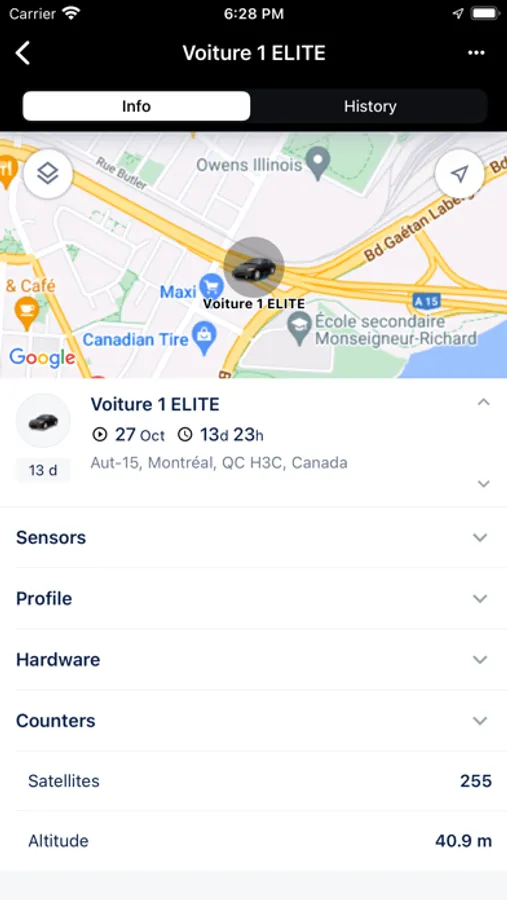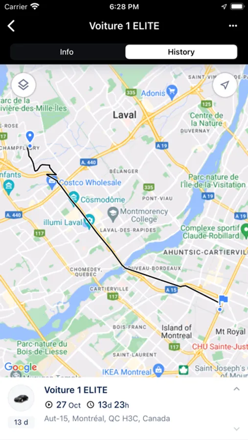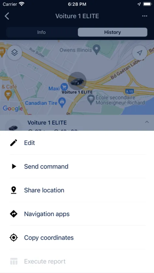 Access units, geofences, tracks, and event markers on the map with the option to find your location.