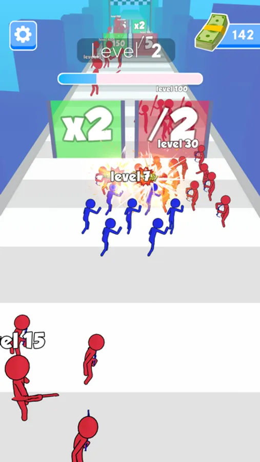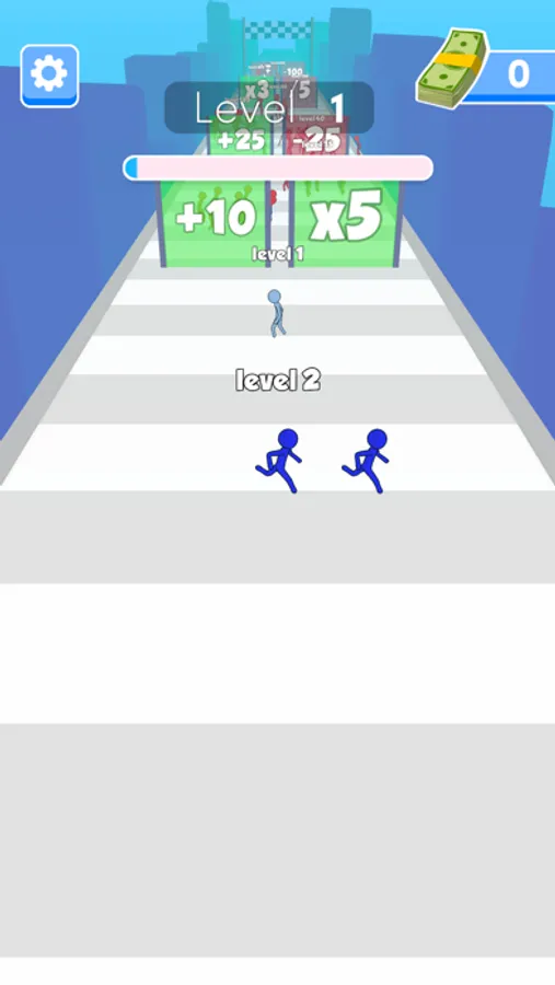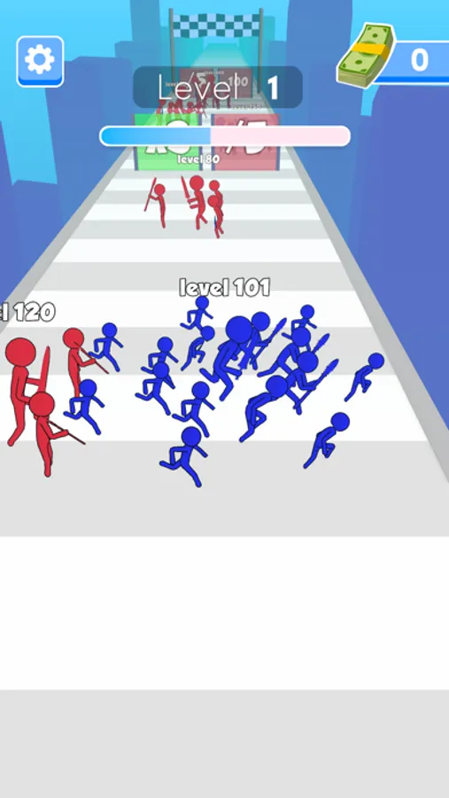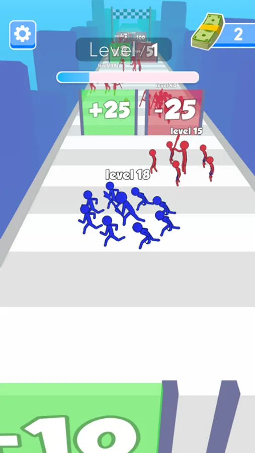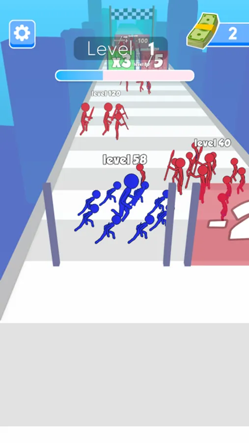 Grow your crowd by collecting lower levels on the road or passing the gates.
