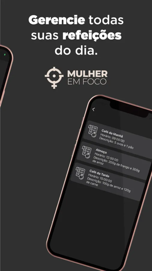 E mais, temos uma área específica para adicionar sua rotina alimentar, com café da manhã, almoço, lanche da tarde, jantar e ceia.