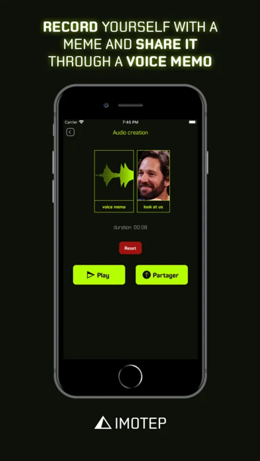 - Use memes to create your own fun voice memos and share your creations to your friends
