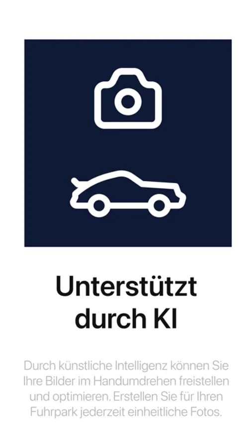DESC-Picture ist die App um professionelle Bilder Ihrer Fahrzeuge zu erstellen. Sie werden vollständig von der App durch den Prozess der Fotografie geleitet. Durch fortschrittliche künstliche Intelligenz werden die Bilder vollautomatisch optimiert.