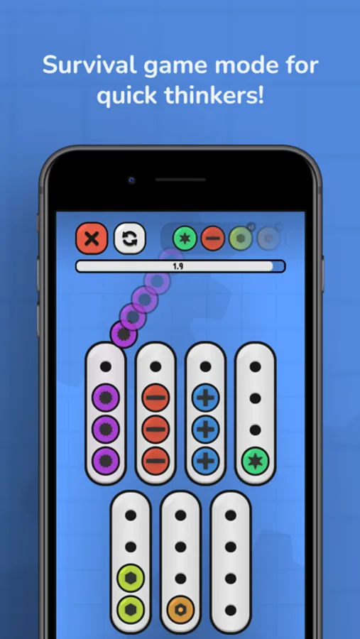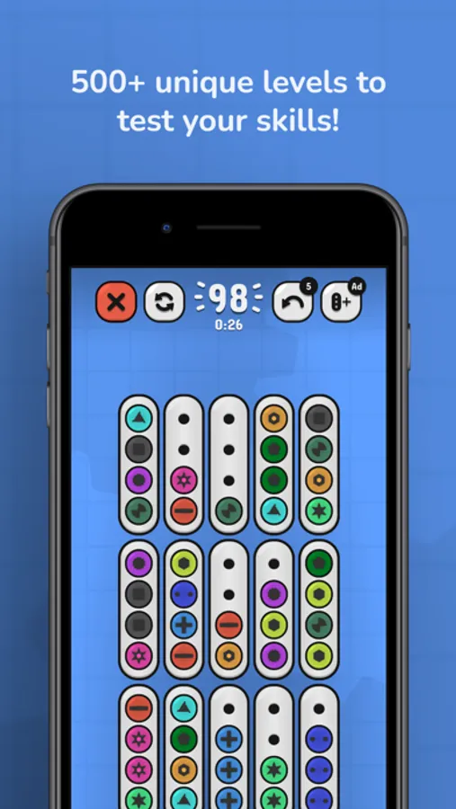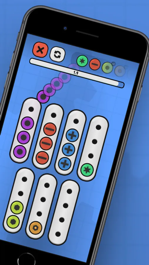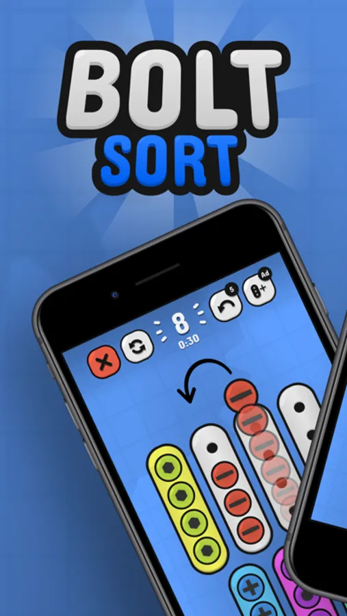 Stimulate and relax your mind with the Ball Sort color and shape sorting puzzle! Quickly sort the colored bolts in the plates until all of the bolts of the same color are separated into their own plate. A challenging, yet relaxing sort 'em all to exercise and relax your mind!